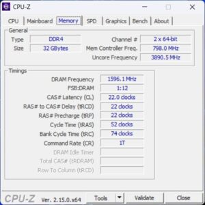 - Two RAM slots: our unit had 2 × 16 GB (32 GB total), dual-channel at 3200 MHz
