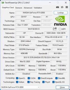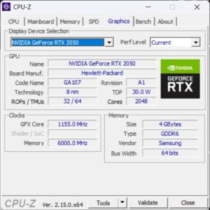 | Graphics | Intel Iris Xe Graphics + NVIDIA GeForce RTX 2050 (4 GB GDDR6 VRAM) |
