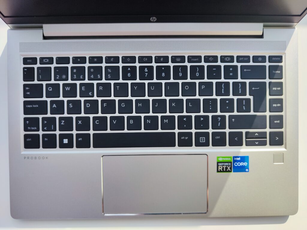 The spill-resistant chiclet keyboard on the HP ProBook 440 G10 is backlit and genuinely pleasant to type on. The key travel feels just right — not too shallow, not too deep — and overall it’s comfortable even during longer writing sessions. Typing on it just feels good.